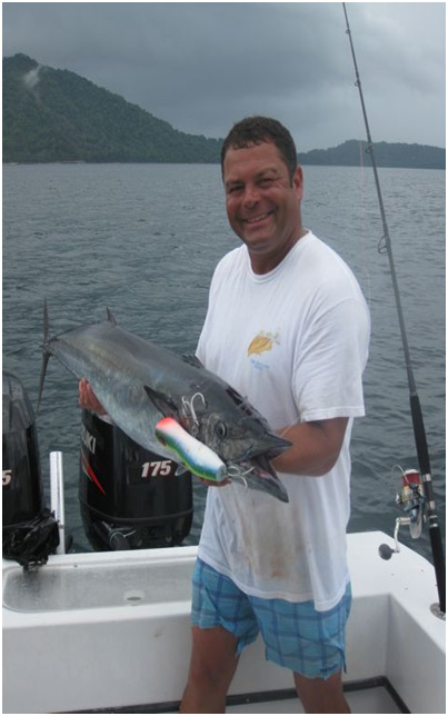 The season has continued to be beautiful down here in panama, there still has been very little rain and the seas have been very calm. Same as May 2010, the Yellowfin Tuna have been everywhere, and this week many over 200# were hooked..some caught..some got away!.Many of the fish are in the 80 to 100# range. Our popper crazy friends colin and john were here this week and got spooled several times on huge tuna..they found lots of rooster fish and snapper fishing around the islands. Our friend Johnny caught a nice Tarpon, along with plenty of other fish, fishing around coiba. We also caught several nice wahoo caught on poppers this last week, along with a few marlin and sail fish. Paul was back out with capt. chicho this week and as always have a fantastic trip. Next year is filling up fast, so make sure you make reservations if your interested in coming down in 2012.