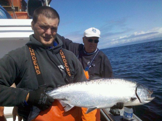 We left the dock in time for a short bite just inside Tatoosh Island. We realeased the 2 chinook that were landed during the first hour, then headed off shore where we found a steady and consistent Chinook bite until we wrapped it up at about 2 PM. We were the only boat in sight.