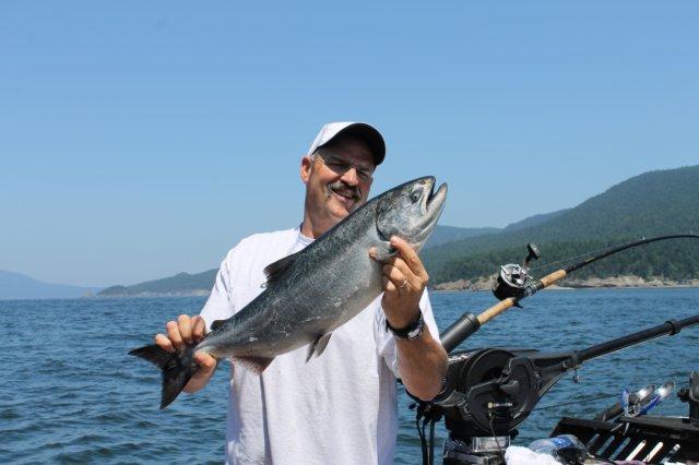 After trying a couple other locations, Dave Pridemore of 710 ESPN Seattle found this chunky Thatcher Pass hatchery chinook that is headed for a July 4th barbeque!