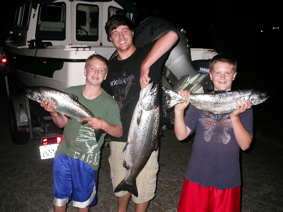 Went to Jeff Head for some evening fishing before the end of the Chinook season and we got a double, including the large 20lb'er. Caught deep 150 - 160' feet or so down with a cookies $ cream spoon. Great way to end the season for me and the boys. Released a wild and had a long distance release on another nice one!