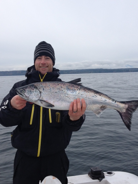 My buddy and I decided to change things up from the usual trolling routine and mooched for a couple hours Saturday AM. On first drift of the day he hooked up with a nice blackmouth but that was it for the rest of the morning. We are mooching rookies so we were pretty fired up to get a nice keeper.