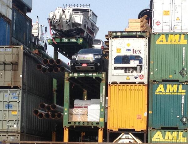 As I write this I'm working on my annual Sitka blog but we do indeed ship the boat up on Alaska Marine Lines and it rides to Alaska way up high atop a barge!
