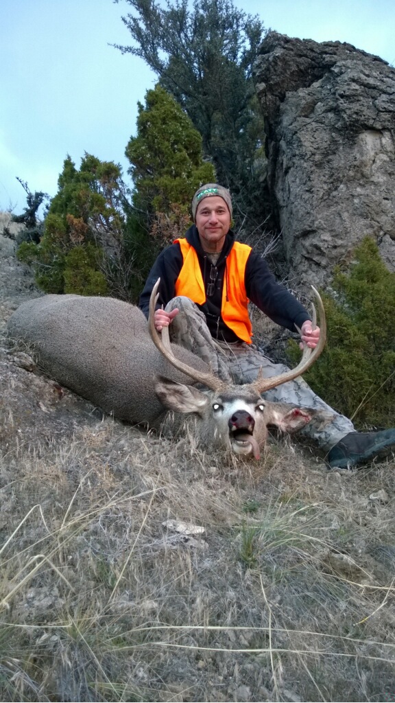 Here's long time friend Robert Aguilera with a nice muley that he tagged hunting near Bozeman, Montana. He said it had an inside spread of 23 and a half inches. Great buck Robert!