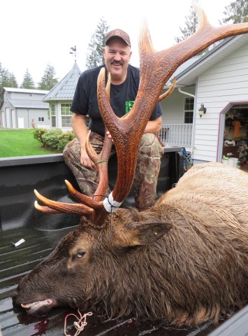 After a week of hard hunting I was rewarded with an opportunity to take this magnificent 6-point bull which WDFW Biologists estimated to weigh over 800lbs on the hoof!