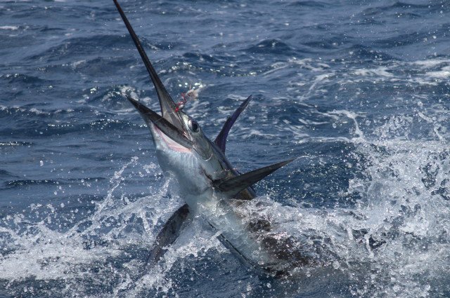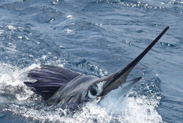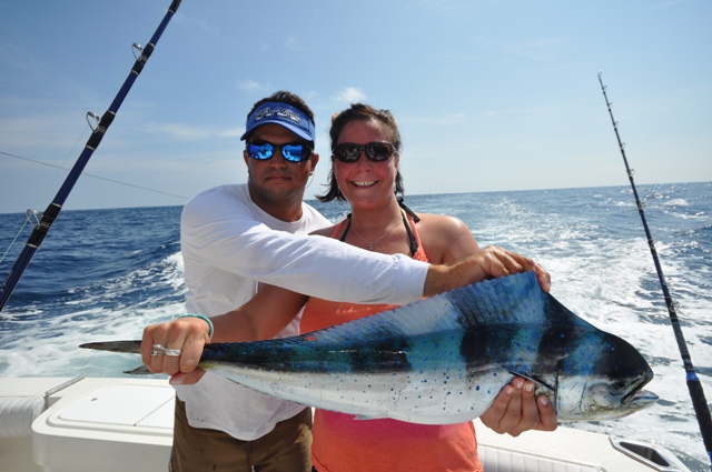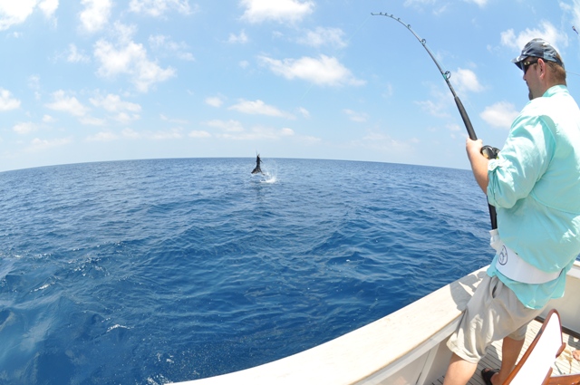 Half Pint (Jeremy) Mate abourd the Dream Raiser. He's only 15 years old and has already been to Marlin University! Capt Mel Erickson put some serious time and money into his crew and it shows. In this photo we were still busy releasing Aly's first sail when I noticed that Half Pint already had two teasers out and was clipping one of the bait rods in. Watch for this little Jr. Legend in the future. He will probably be gracing the cover of blue water magazines on your local book shelf someday. He and and Aly are now BFF's. Hahahaha.